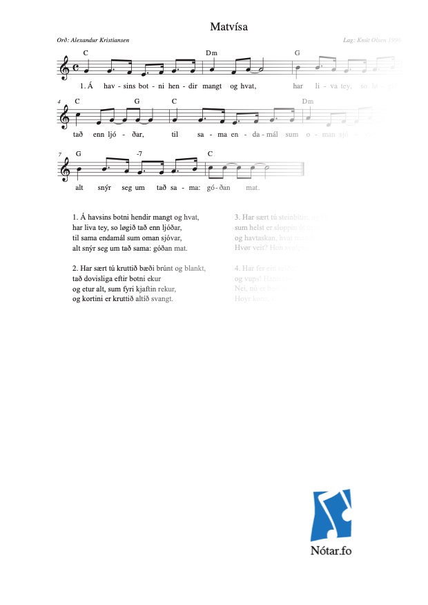 Leita eftir heiti, fyrstu reglu, niðurlagi, tekstuppruna ella lagauppruna...
