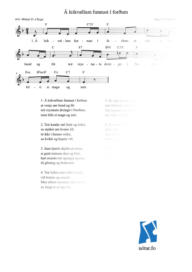 Leita eftir heiti, fyrstu reglu, niðurlagi, tekstuppruna ella lagauppruna...