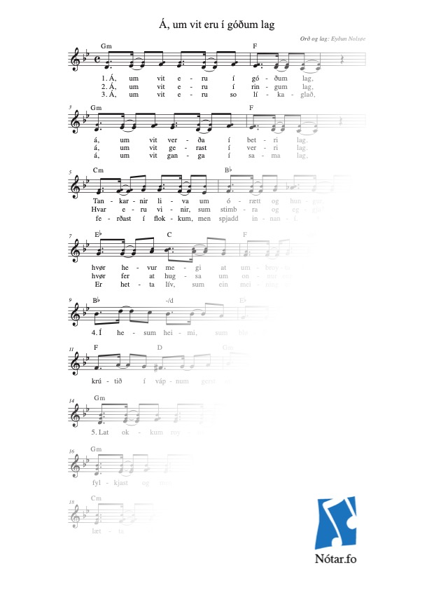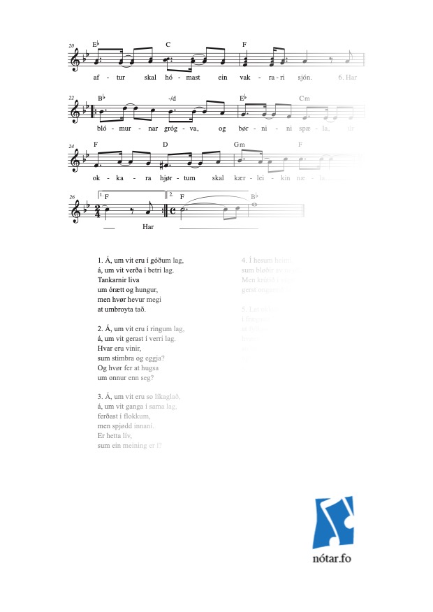 Leita eftir heiti, fyrstu reglu, niðurlagi, tekstuppruna ella lagauppruna...