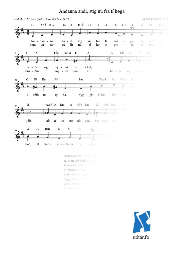 Andanna andi, stíg nú frá tí høga quantity