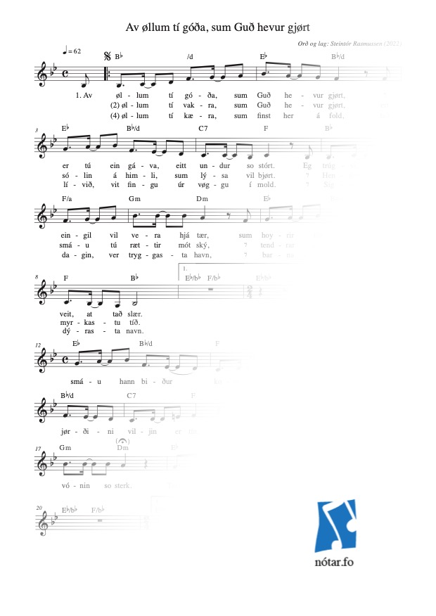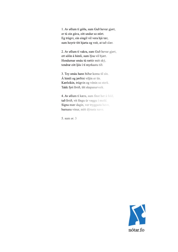 | Fyrsta regla | Av øllum tí góða, sum Guð hevur gjørt |