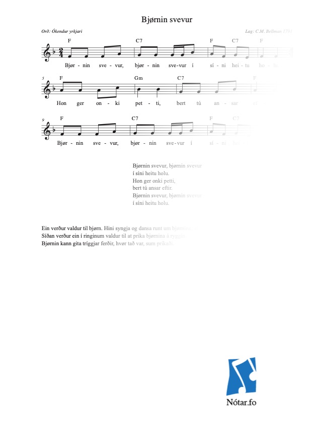 Leita eftir heiti, fyrstu reglu, niðurlagi, tekstuppruna ella lagauppruna...