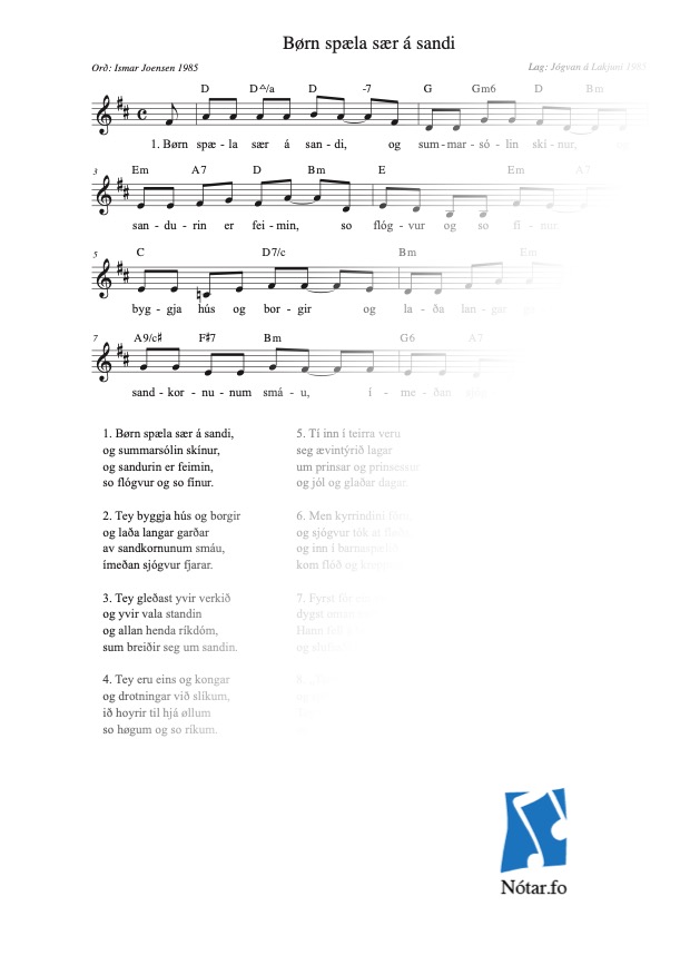 Leita eftir heiti, fyrstu reglu, niðurlagi, tekstuppruna ella lagauppruna...