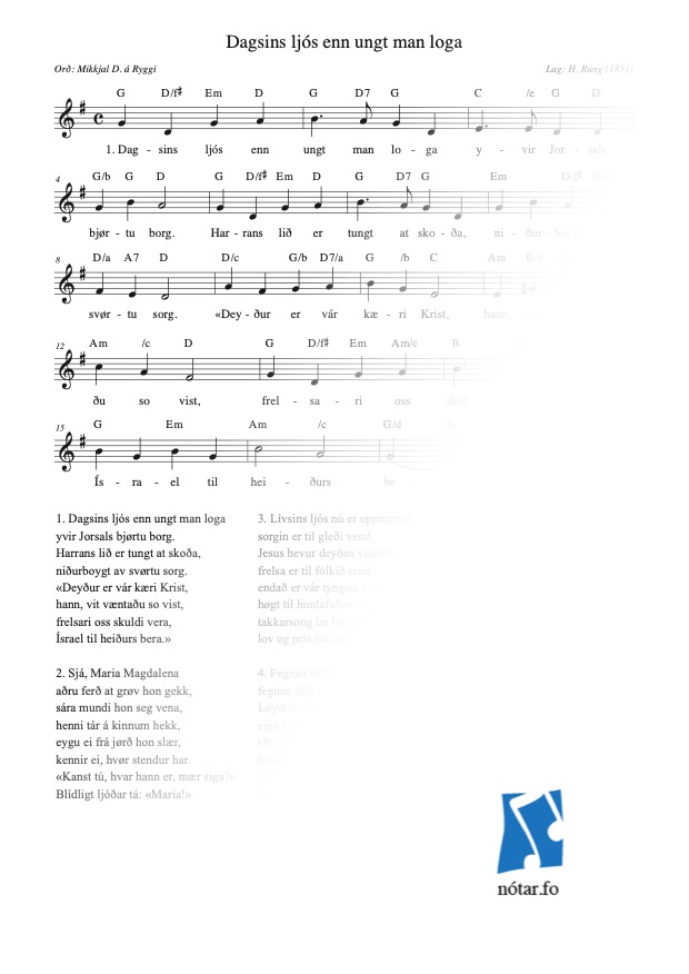 Leita eftir heiti, fyrstu reglu, niðurlagi, tekstuppruna ella lagauppruna...
