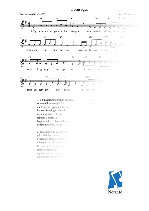 Leita eftir heiti, fyrstu reglu, niðurlagi, tekstuppruna ella lagauppruna...