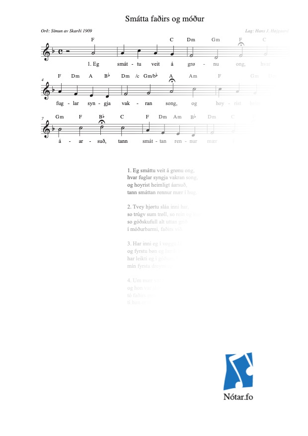 Leita eftir heiti, fyrstu reglu, niðurlagi, tekstuppruna ella lagauppruna...