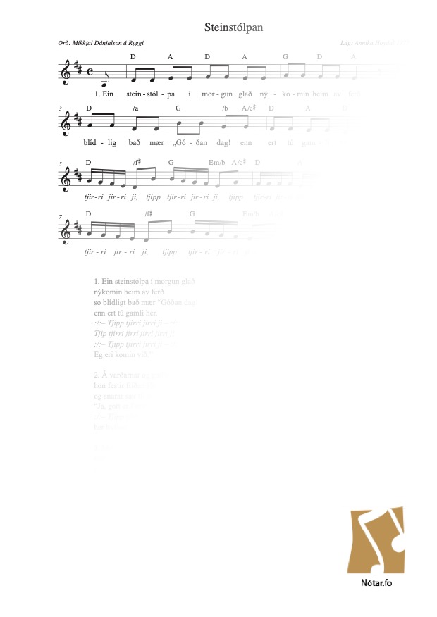 Leita eftir heiti, fyrstu reglu, niðurlagi, tekstuppruna ella lagauppruna...
