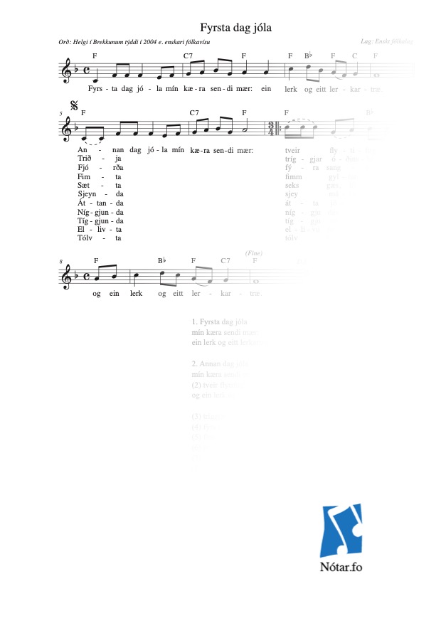 Leita eftir heiti, fyrstu reglu, niðurlagi, tekstuppruna ella lagauppruna...