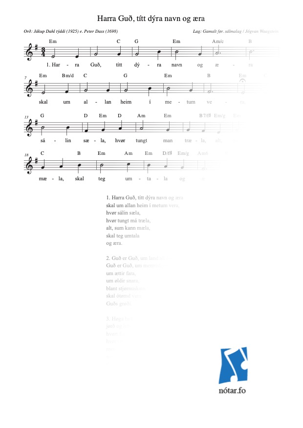 | Lag | Gamalt før. sálmalag / Jógvan Waagstein |