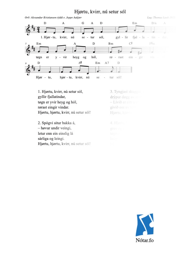 Leita eftir heiti, fyrstu reglu, niðurlagi, tekstuppruna ella lagauppruna...