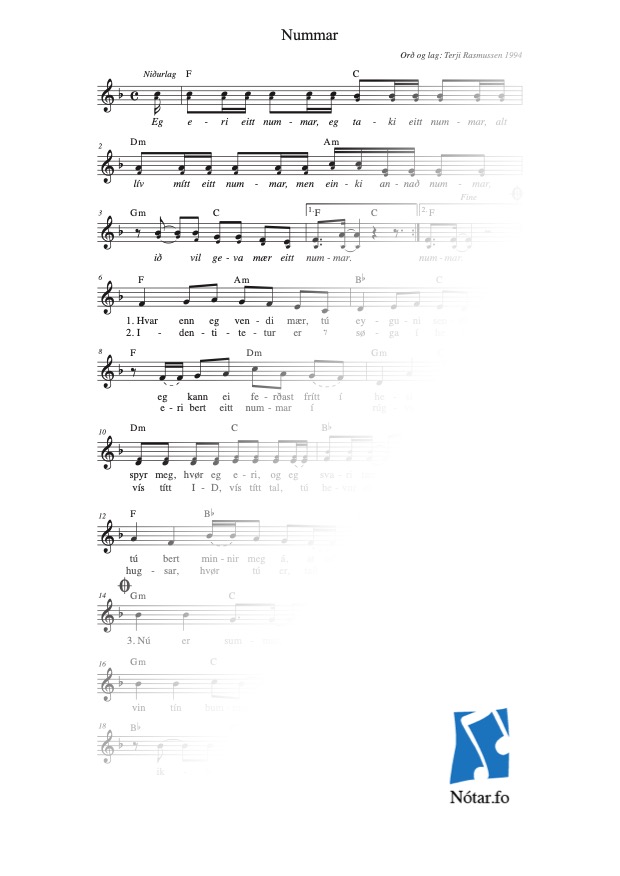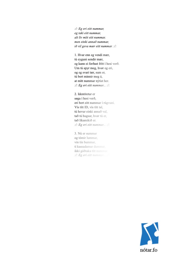 NiðurlagEg eri eitt nummar
