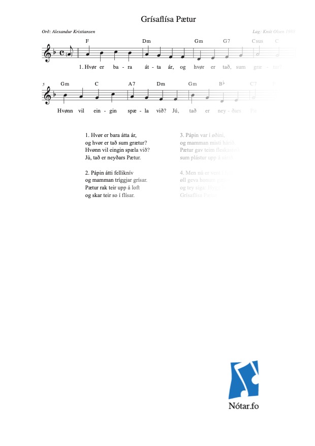 Leita eftir heiti, fyrstu reglu, niðurlagi, tekstuppruna ella lagauppruna...