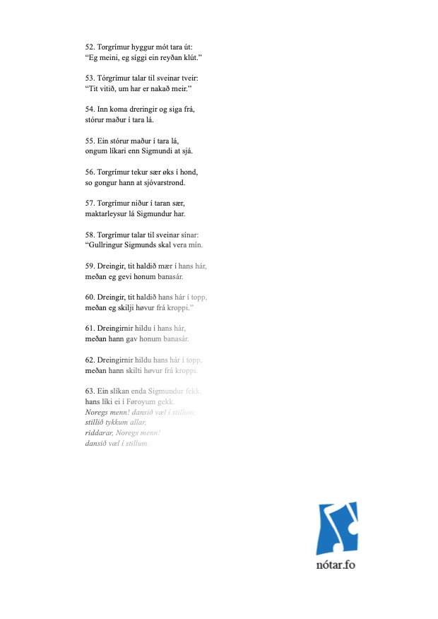 | Niðurlag | Noregs menn! dansið væl í stillum |