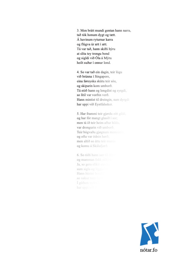 Leita eftir heiti, fyrstu reglu, niðurlagi, tekstuppruna ella lagauppruna...