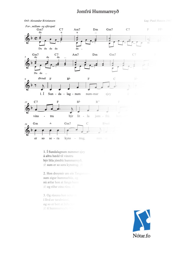 | Nótaslag | Tekstur / lag v. stemmum / talseting |