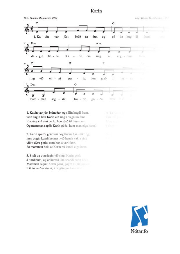 Leita eftir heiti, fyrstu reglu, niðurlagi, tekstuppruna ella lagauppruna...