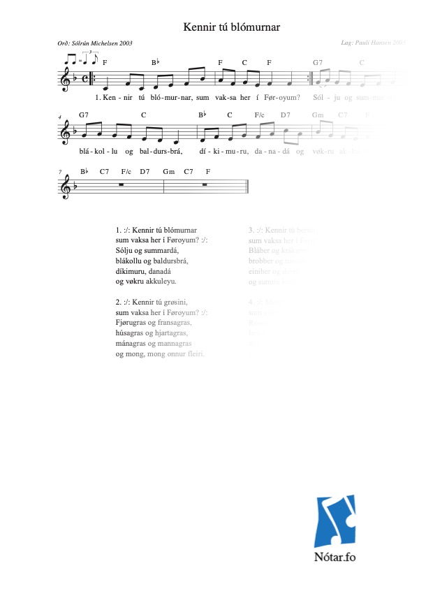 Leita eftir heiti, fyrstu reglu, niðurlagi, tekstuppruna ella lagauppruna...