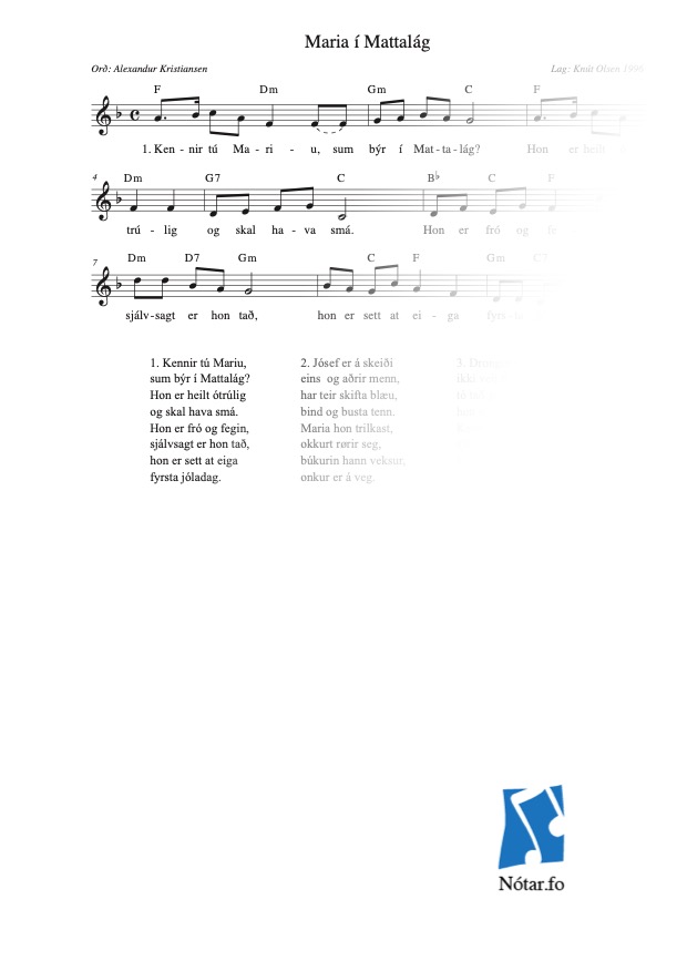 Leita eftir heiti, fyrstu reglu, niðurlagi, tekstuppruna ella lagauppruna...