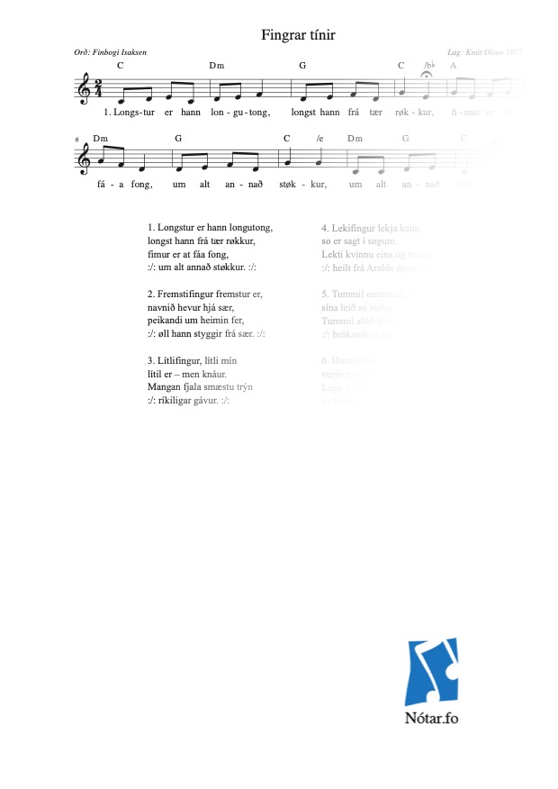 Leita eftir heiti, fyrstu reglu, niðurlagi, tekstuppruna ella lagauppruna...