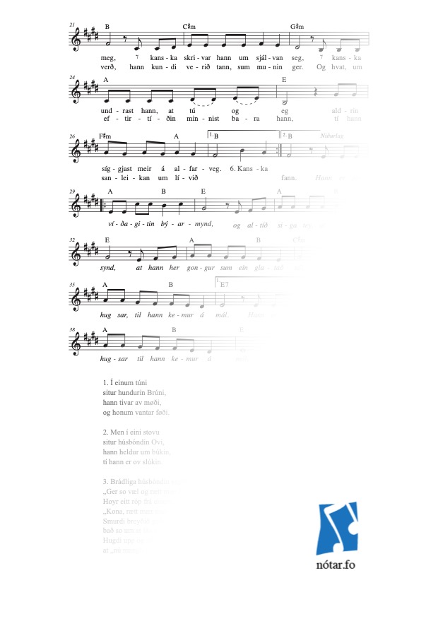 Leita eftir heiti, fyrstu reglu, niðurlagi, tekstuppruna ella lagauppruna...