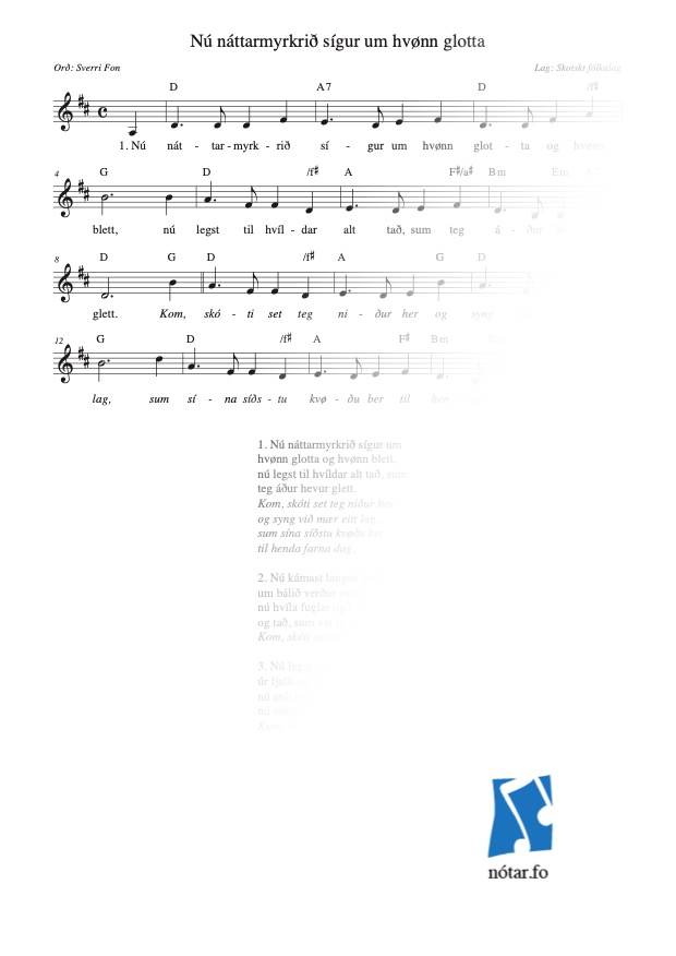 Fyrsta reglaNú náttarmyrkrið sígur um hvønn glotta