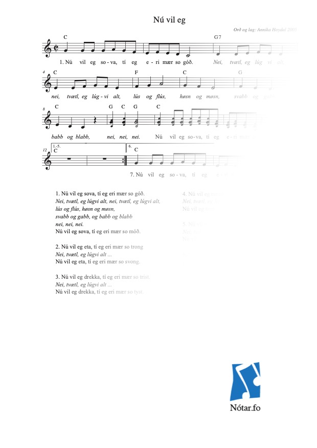 Leita eftir heiti, fyrstu reglu, niðurlagi, tekstuppruna ella lagauppruna...