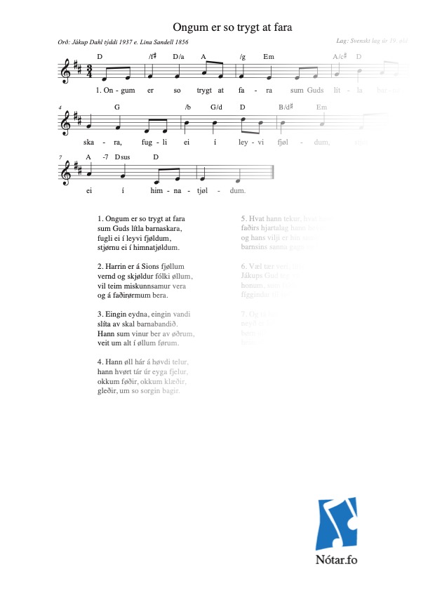 Jákup Dahl týddi 1937 e. Lina Sandell, 1856