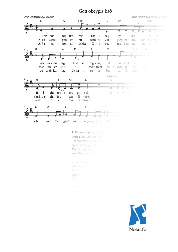 | Nótaslag | Tekstur / lag / talseting |