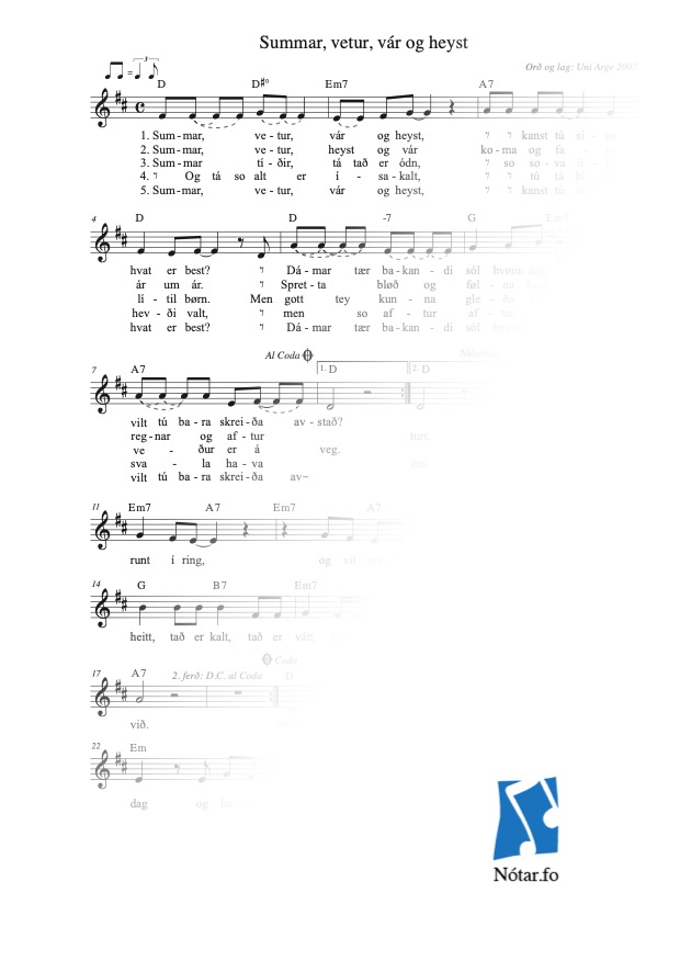 Leita eftir heiti, fyrstu reglu, niðurlagi, tekstuppruna ella lagauppruna...