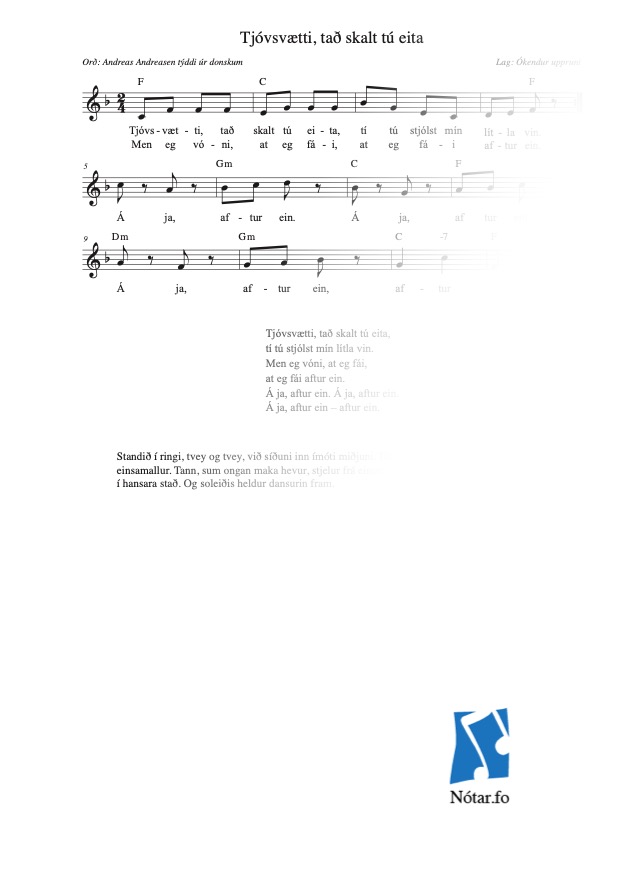 Leita eftir heiti, fyrstu reglu, niðurlagi, tekstuppruna ella lagauppruna...