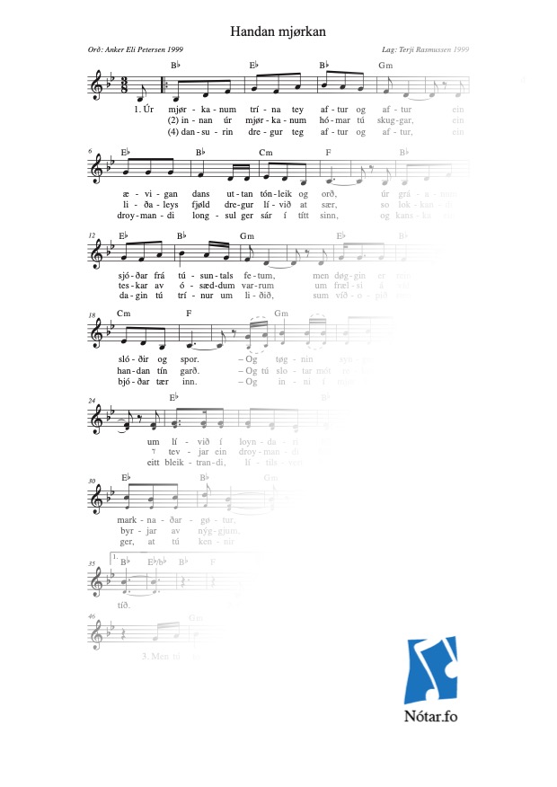 | Nótaslag | Tekstur / lag v. stemmum / talseting |