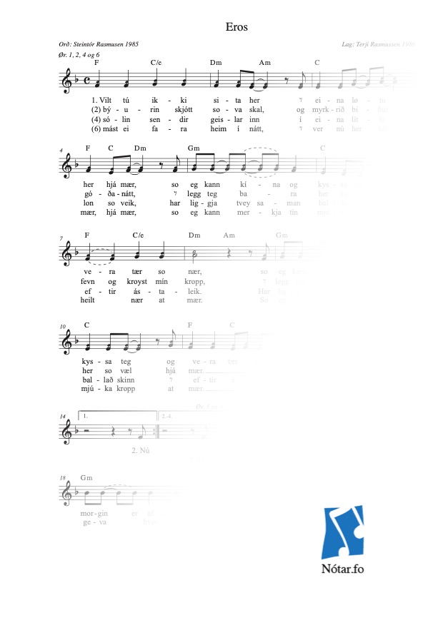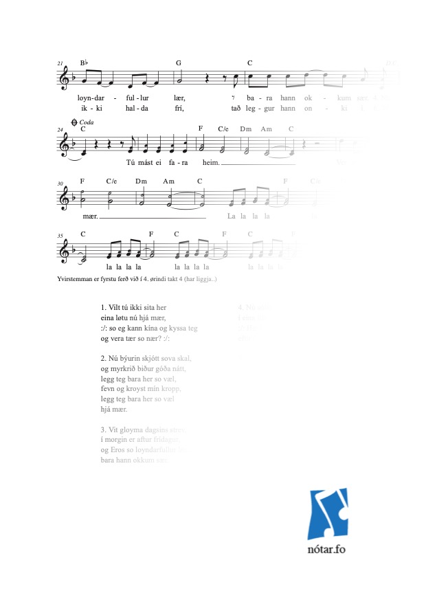 NótaslagTekstur / lag v. stemmum / talseting