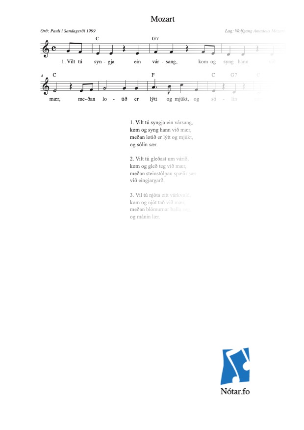 Leita eftir heiti, fyrstu reglu, niðurlagi, tekstuppruna ella lagauppruna...